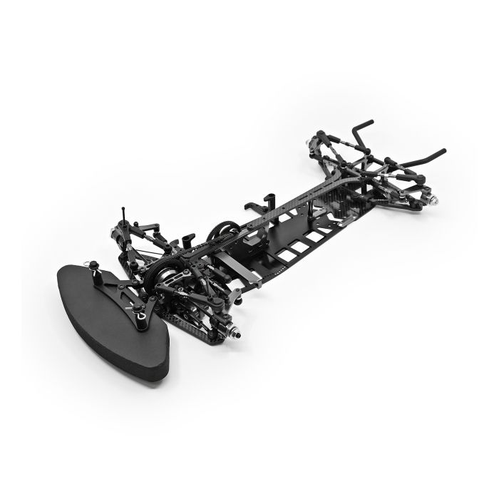 The standout feature of the A800FXR kit is its innovative two-piece, bi-material chassis plate. The forward section, made of aluminum, supports the front end, transmission, and electronics, while a carbon fiber rear section holds the rear assembly. While offering improved weight distribution and refined flex characteristics it brings unparalleled tunability as it allows four different wheelbase settings, truly redefining the phrase “the best of both worlds”!